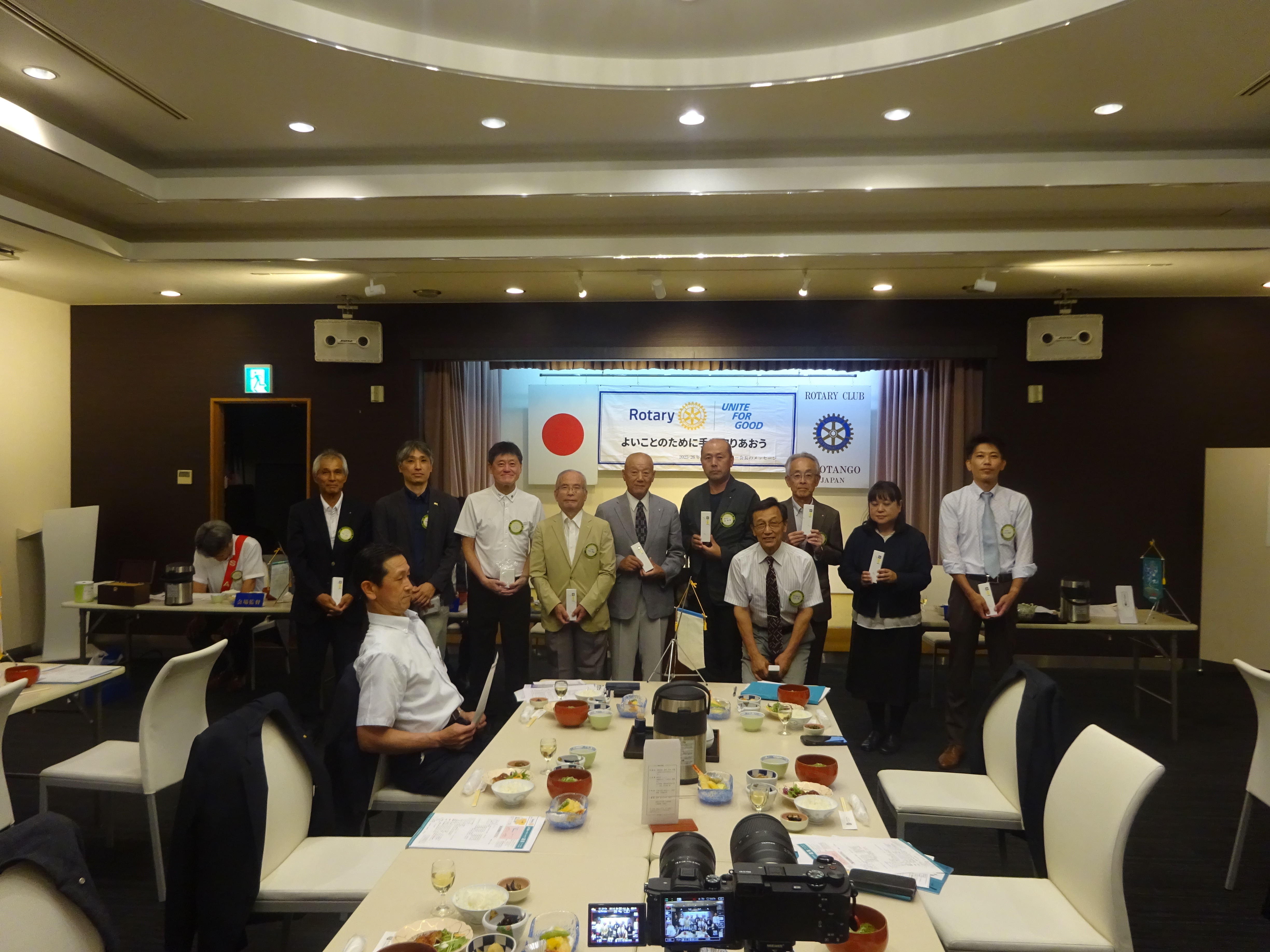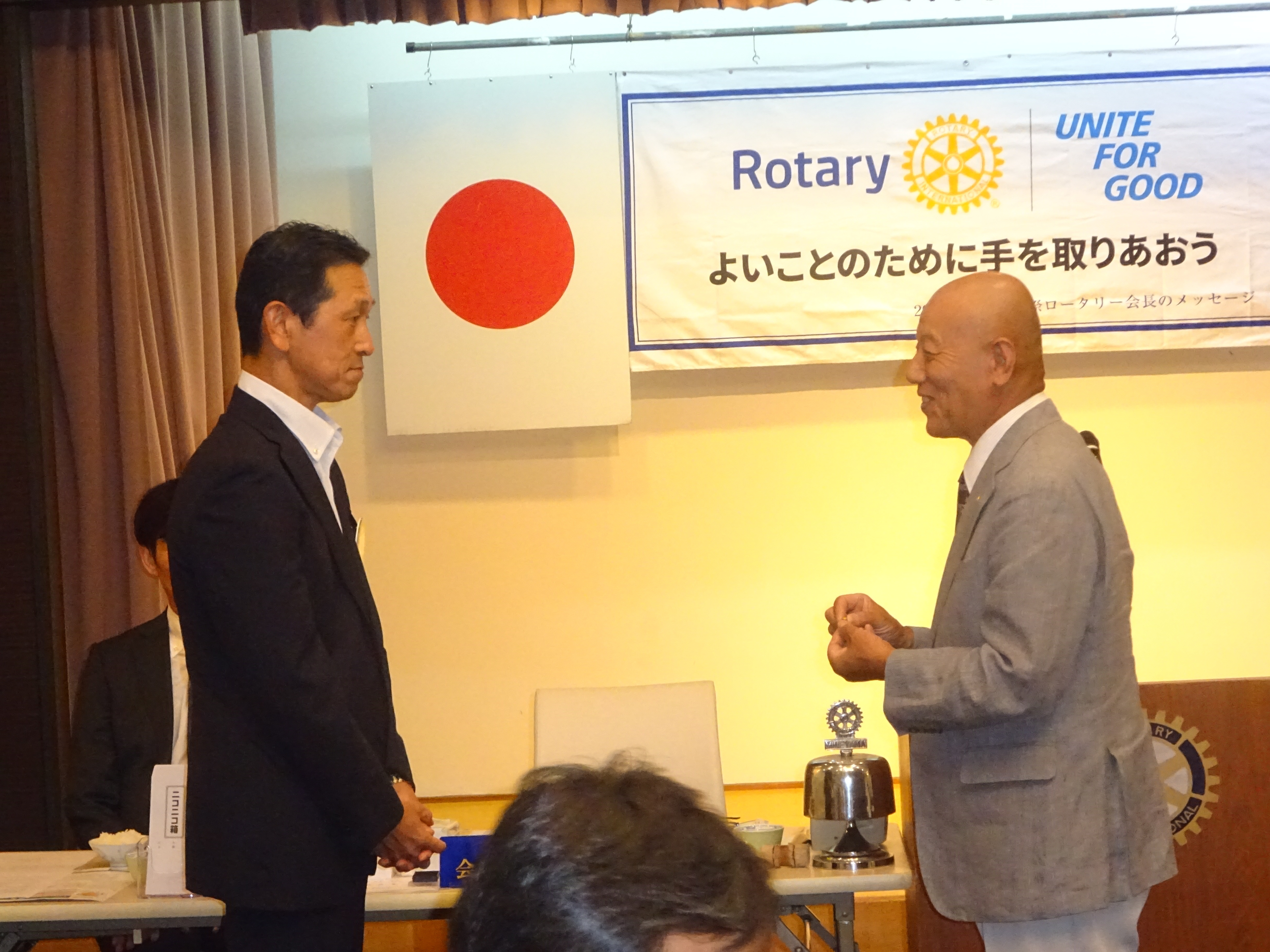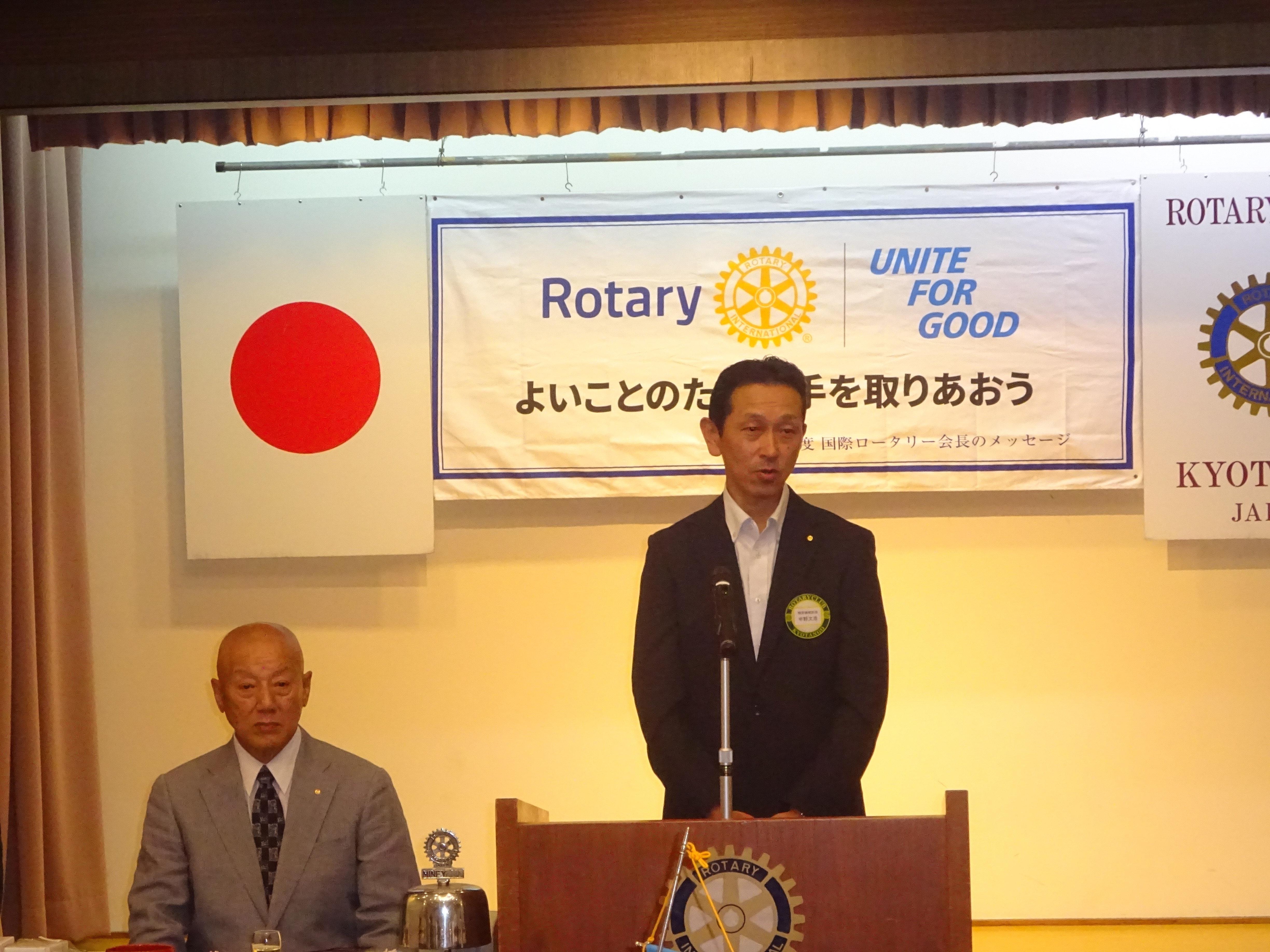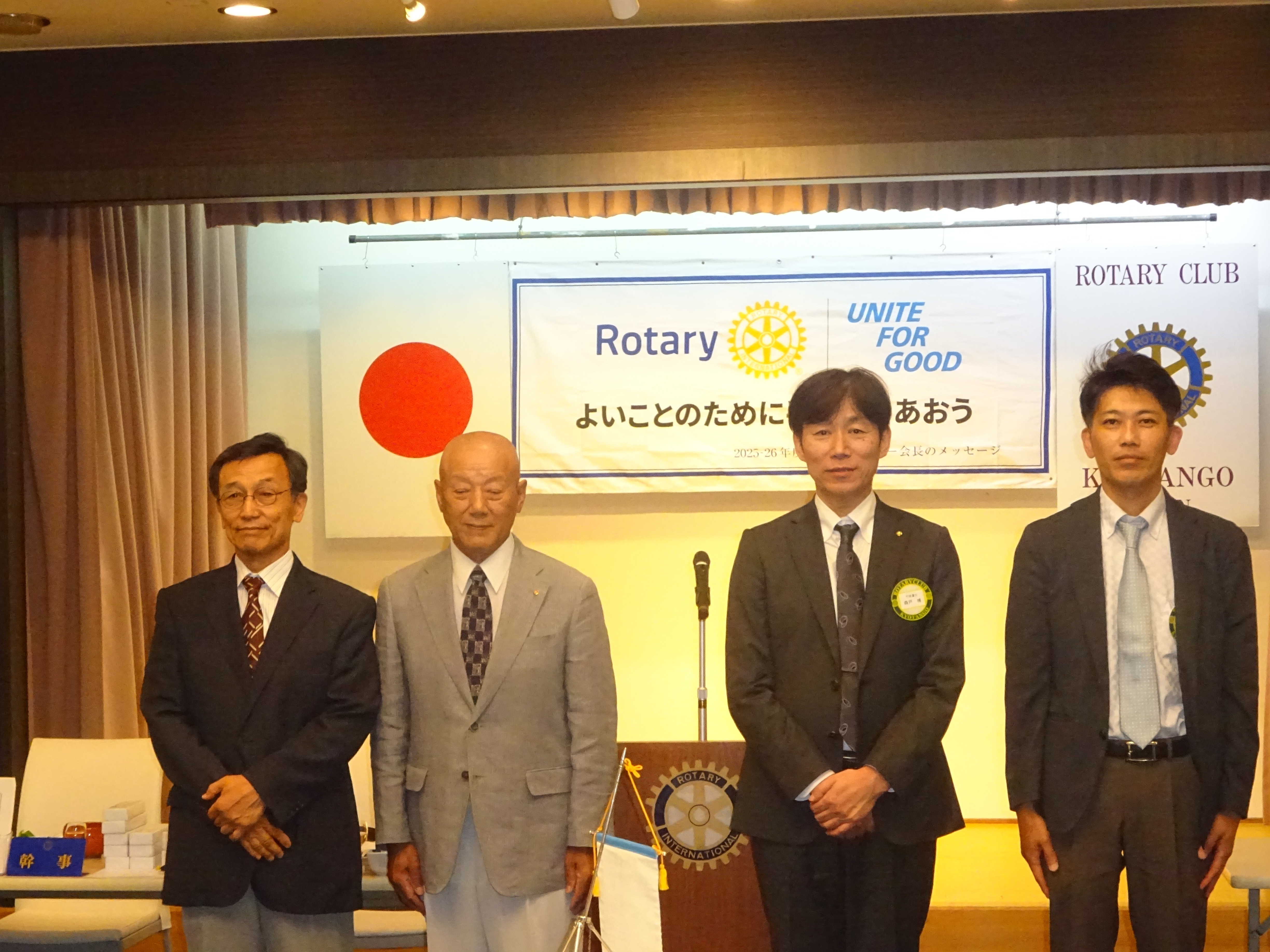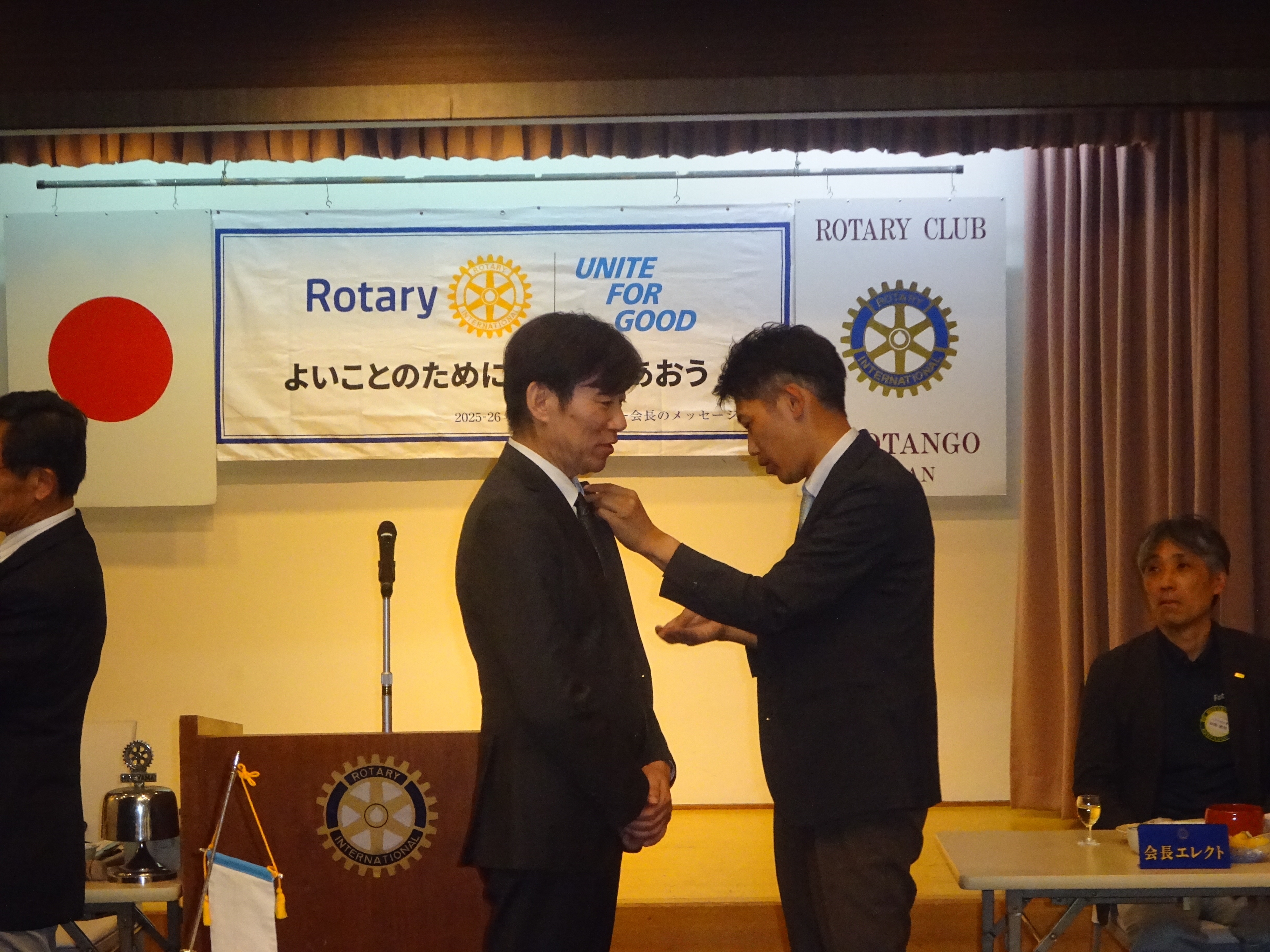 会長・幹事バッジ交換授与 矢谷会長から國村会長へ 山本幹事から森戸幹事へ