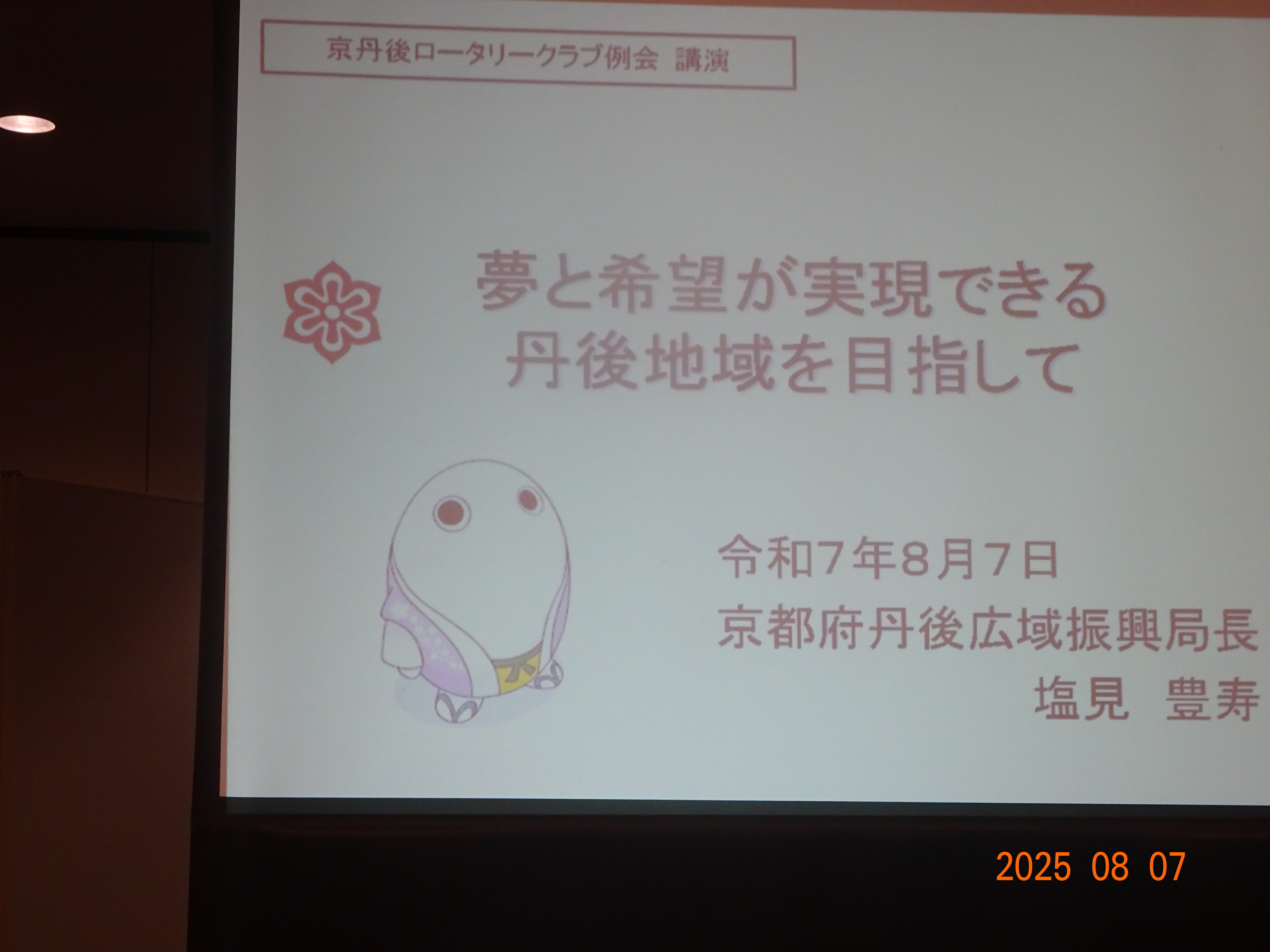 本日の講師・・・京都府丹後広域振興局長 塩見豊寿様 『夢と希望が実現できる丹後地域を目指して!』